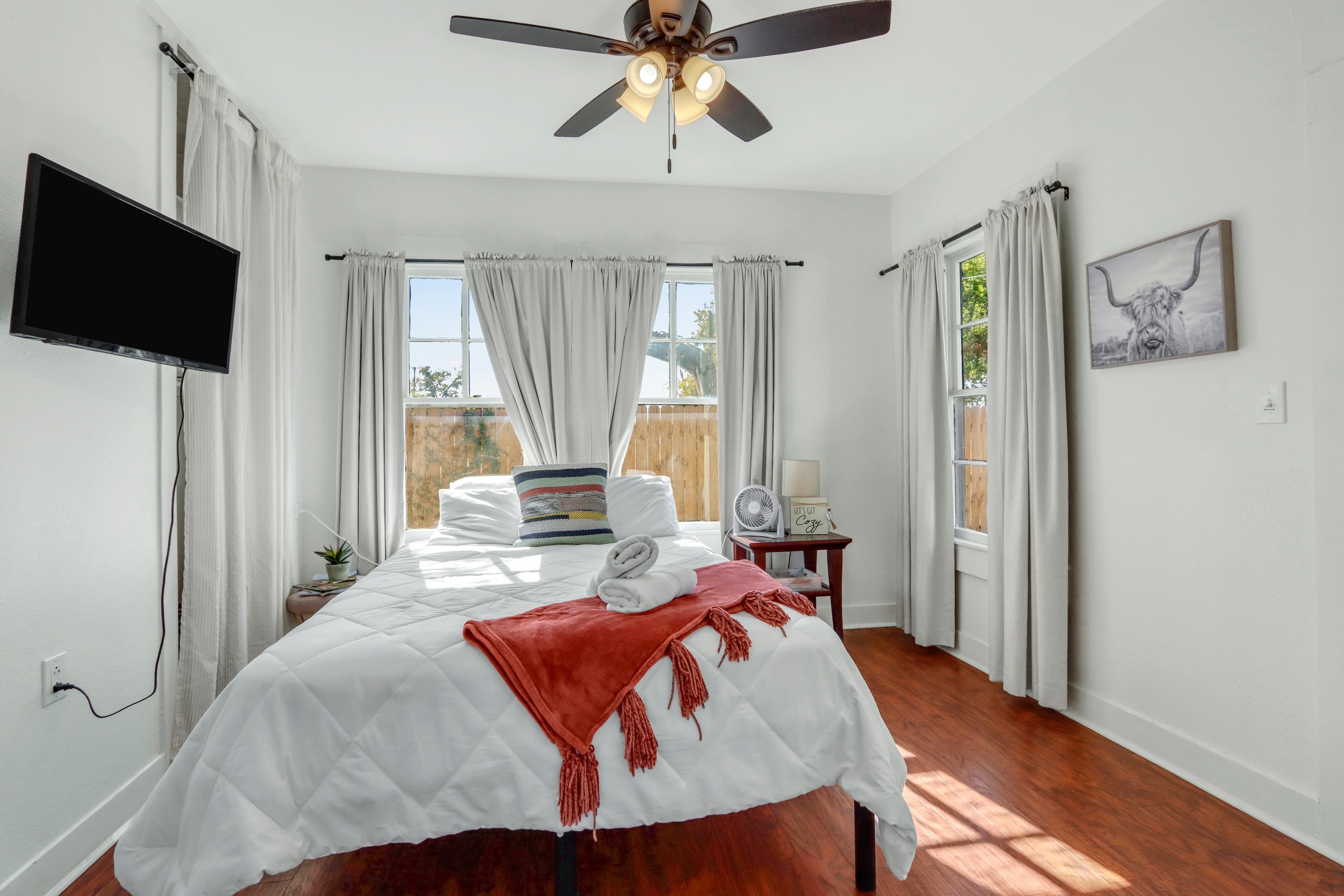 Welcome to our charming home nestled in the historic Milltown district. Situated in the heart of New Braunfels, our rental offers a delightful blend of modern comfort and vintage charm. You'll be just a few blocks away from the iconic Faust Bridge, Guadalupe River Access, local dining and a renovated movie theatre! Beyond that, downtown New Braunfels, Gruene, live music, the outlets malls and more are just minutes away. Flexible check in and out, toiletries, coffee and a stocked kitchen.